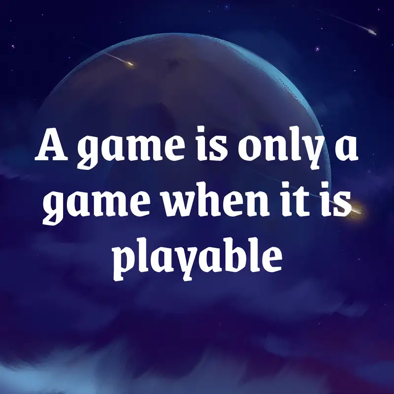 A game is only a game if it is playable. It is so hard for me to resist the temptation to retreat to the "mind palace" where my game devolves from a playable, testable...